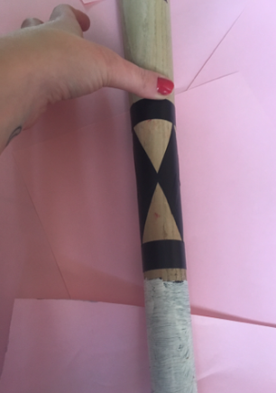 Ok, on to the next! To make Harley's glove I found an old glove of mine, cut of the tips, and used black masking tape to paint it exactly like like Quinn's!